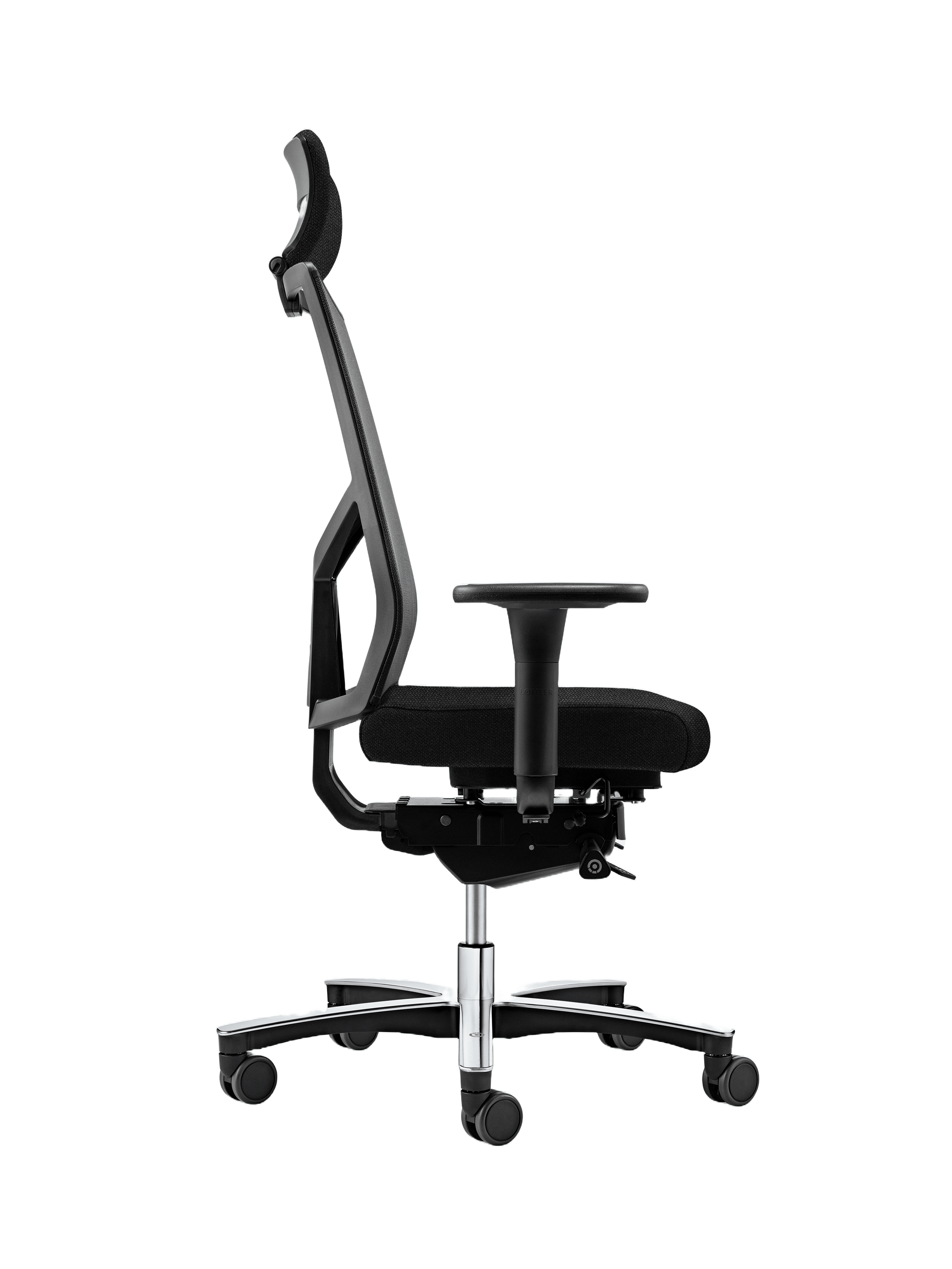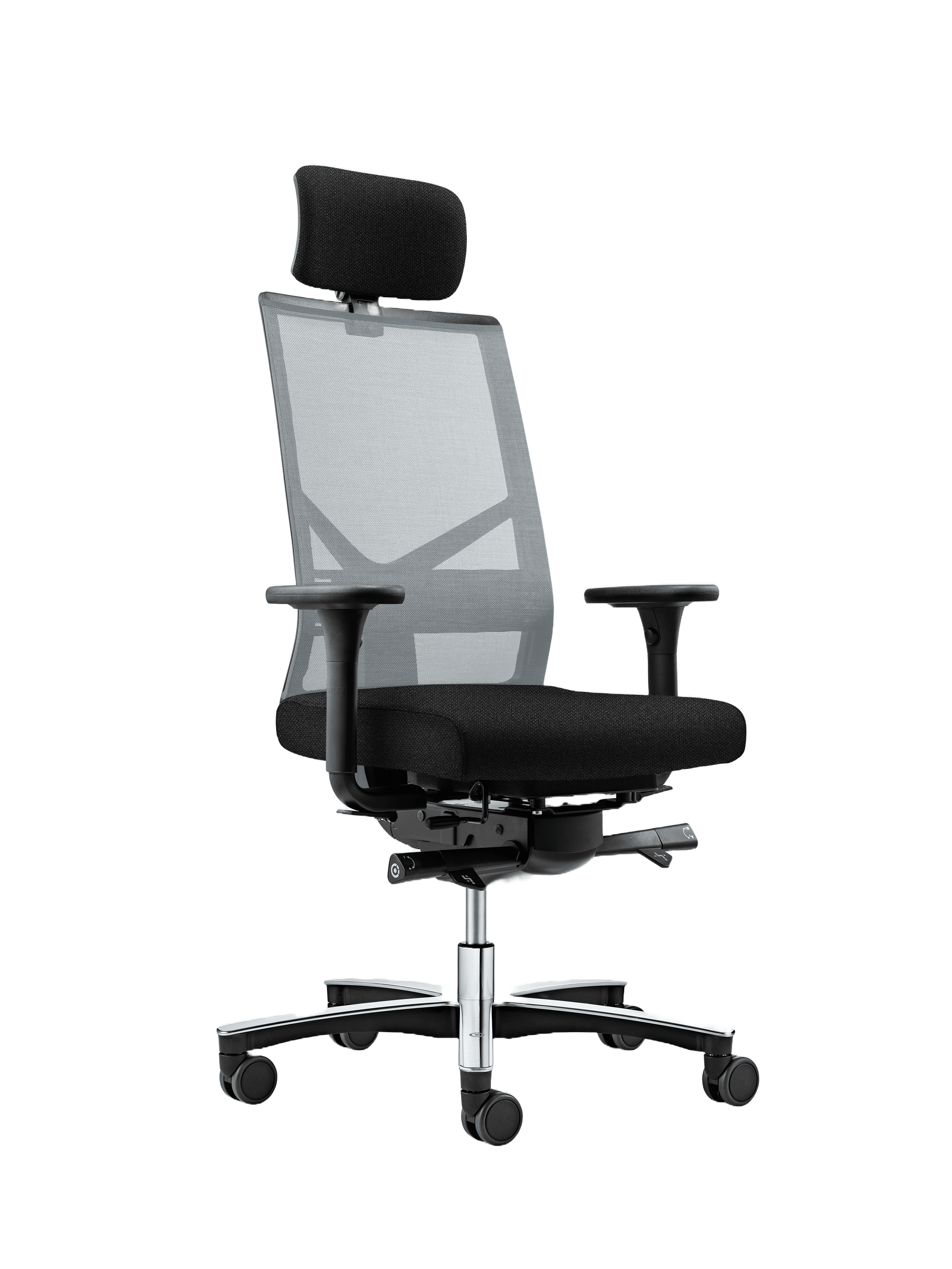 Det ergonomisk formede sæde, den synkrone mekanik og den trinløse højde- og sædedybdejustering sikrer optimal komfort.